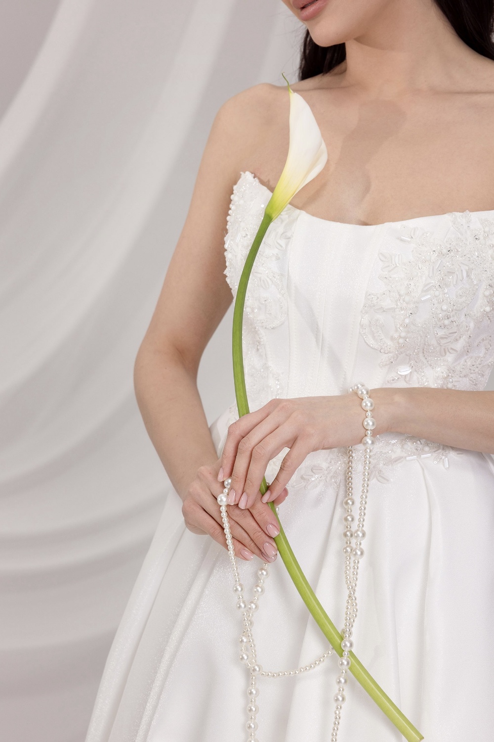 La robe Admina incarne l'élégance intemporelle dans toute sa splendeur. Son bustier droit orné de délicates broderies et perles scintillantes met en valeur le décolleté avec raffinement. Sa jupe en mikado lisse et légèrement pailleté, ample et majestueuse, dessine une silhouette fluide et noble. Les détails qui distinguent Admina : Un corsage travaillé avec subtilité, entre modernité et tradition. Une ligne épurée qui sublime la silhouette avec naturel. Une allure de princesse contemporaine, idéale pour les mariées en quête de sobriété élégante. La robe Admina, s'adresse à la mariée qui rêve d'une allure chic, lumineuse et indémodable.