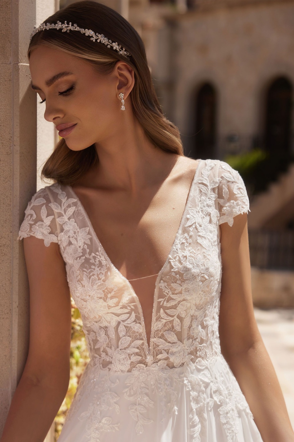 La robe Agatha allie avec élégance romantisme et modernité. Son bustier en dentelle florale délicatement brodée épouse le buste et sublime le décolleté, tandis que les manches courtes apportent douceur et légèreté. Le dos ajouté, subtilement travaillé, dévoile une allure féminine et raffinée. La jupe fluide en crêpe se déploie avec grâce pour accompagner chacun de vos pas et offrir un tombé aérien d'une grande délicatesse. Sa traîne légère apporte une dimension majestueuse sans excès, idéale pour une mariée majestueuse sans excès, idéale pour une mariée en quête de confort et de liberté le jour J. Avec son équilibre parfait entre romantisme intemporel et détails modernes, la robe Agatha est pensée pour la mariée qui rêve d'une allure élégante, naturelle et lumineuse.
